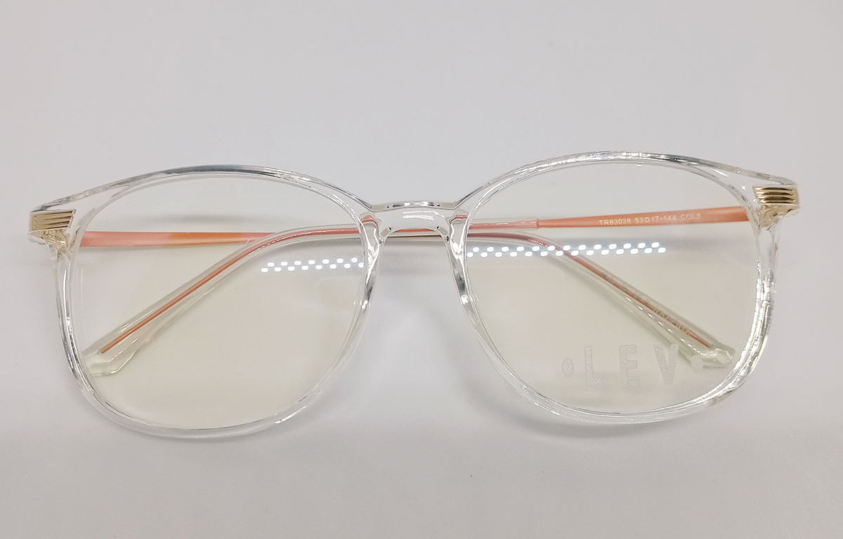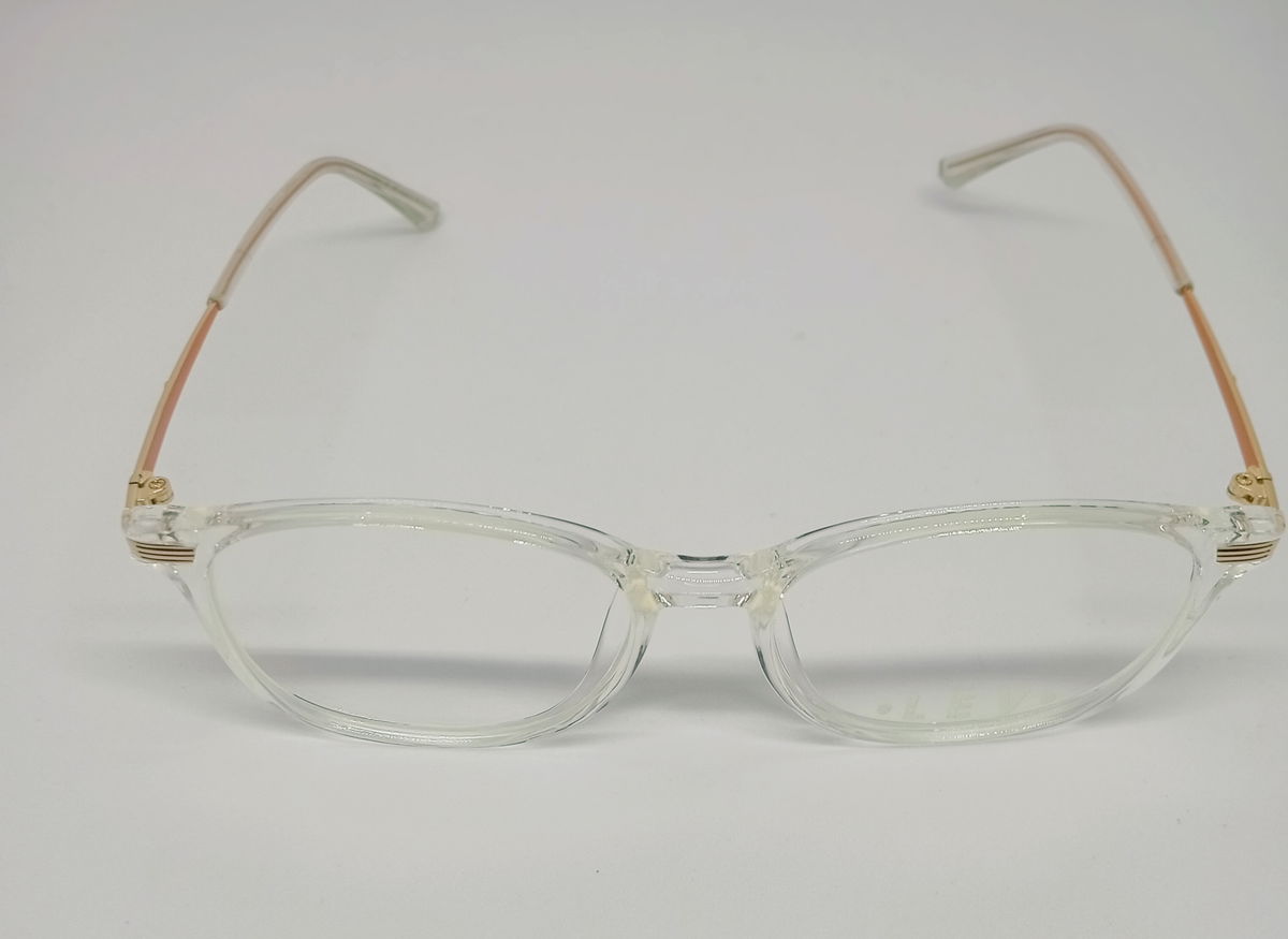 Dama. Material: Nylon. Medidas: 53- 17-144. Color: Transparente, con detalles salmón y dorado en patillas.